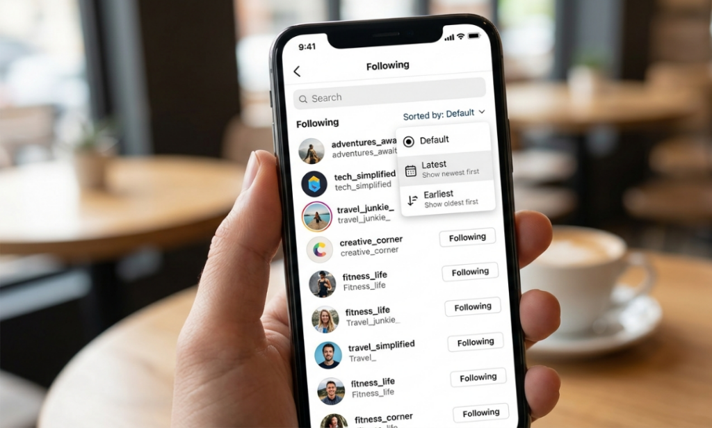 There is no built-in way to sort another person’s recently followed accounts chronologically inside the Instagram app. None. What you see when you tap someone’s following count is an algorithmically shuffled list with no timestamps, no sort options, and no reliable way to spot new additions by scrolling.