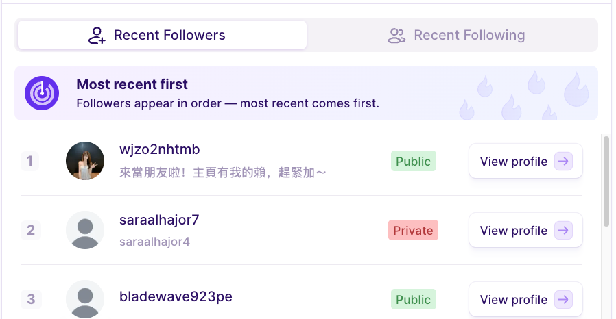 Recently-Followed gives you instant access to follower insights without login requirements or complicated setup. See who followed you recently, track changes in real time, and identify patterns that help you grow smarter.