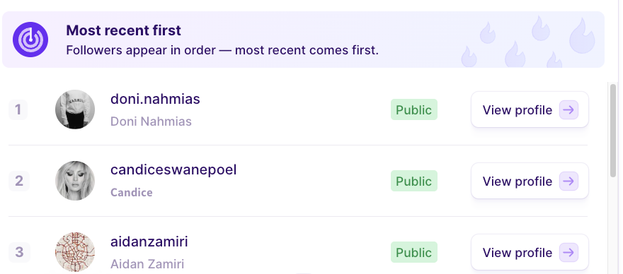 Open your Instagram profile and tap “Followers” to see your list. But Instagram doesn’t show when people followed you or organize them chronologically. For real-time tracking of new followers and Instagram follower growth patterns, use Recently-Followed; it shows who followed you recently in order, helping you refine your social media strategy based on actual audience behavior.
